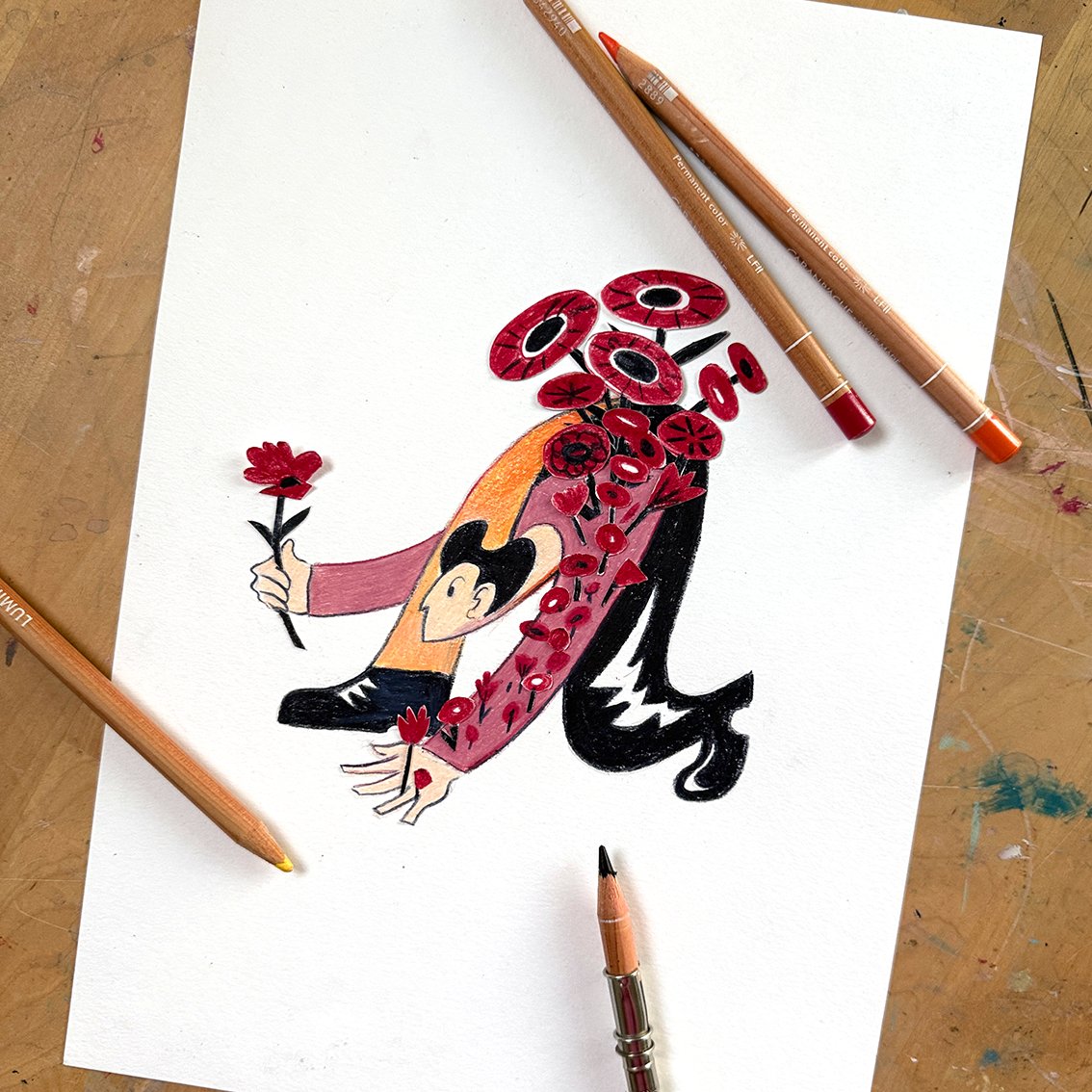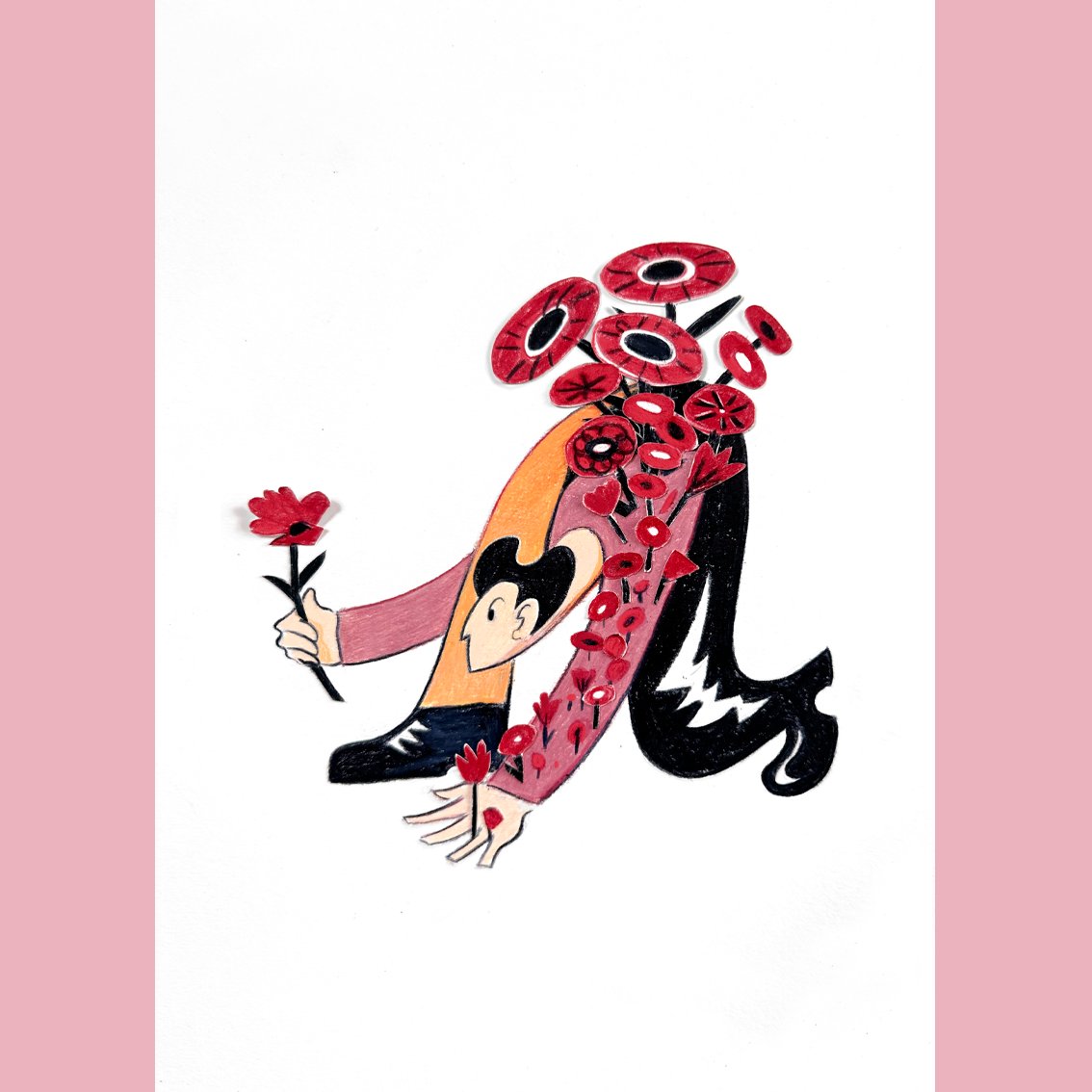 Collage and crayons on Favini cotton paper 250 gr