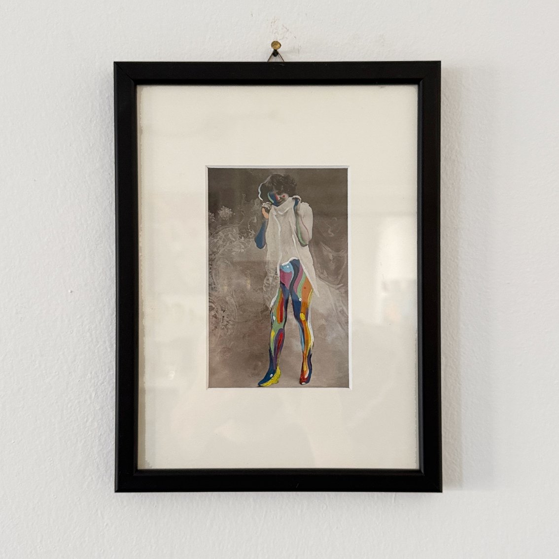 Acrylic paint on vintage photo 9,5 x 14 cm